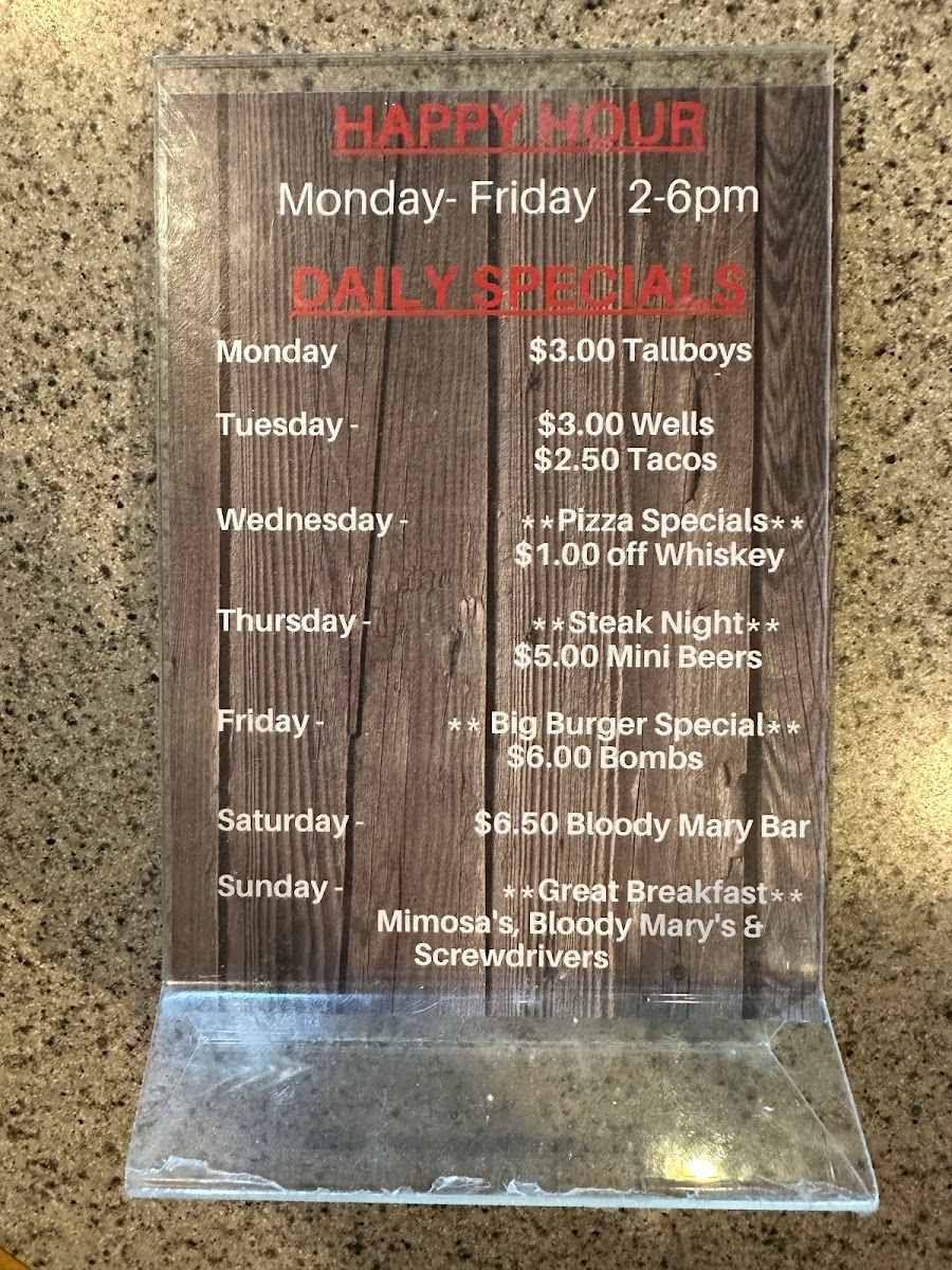 Booneville Bar Menu